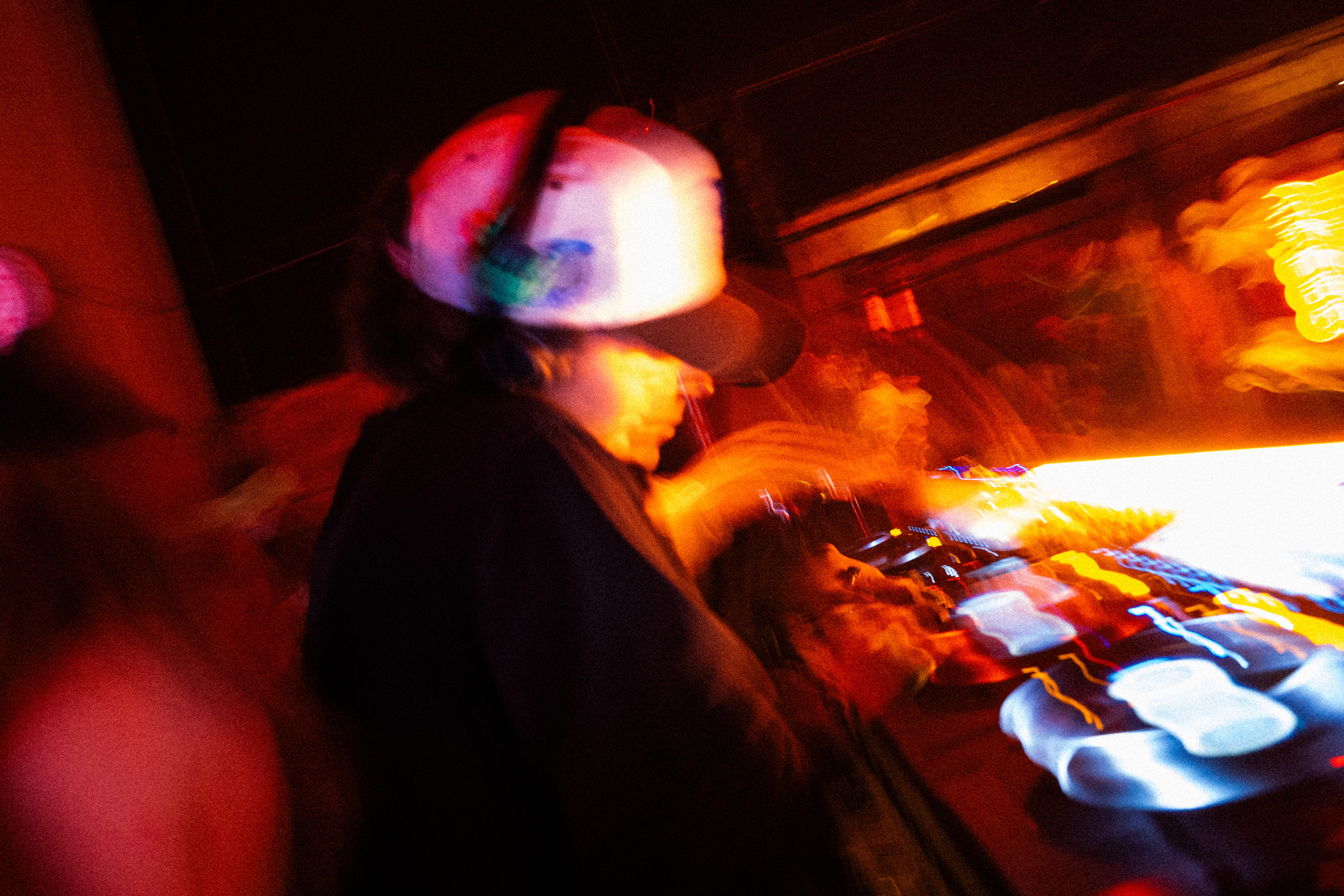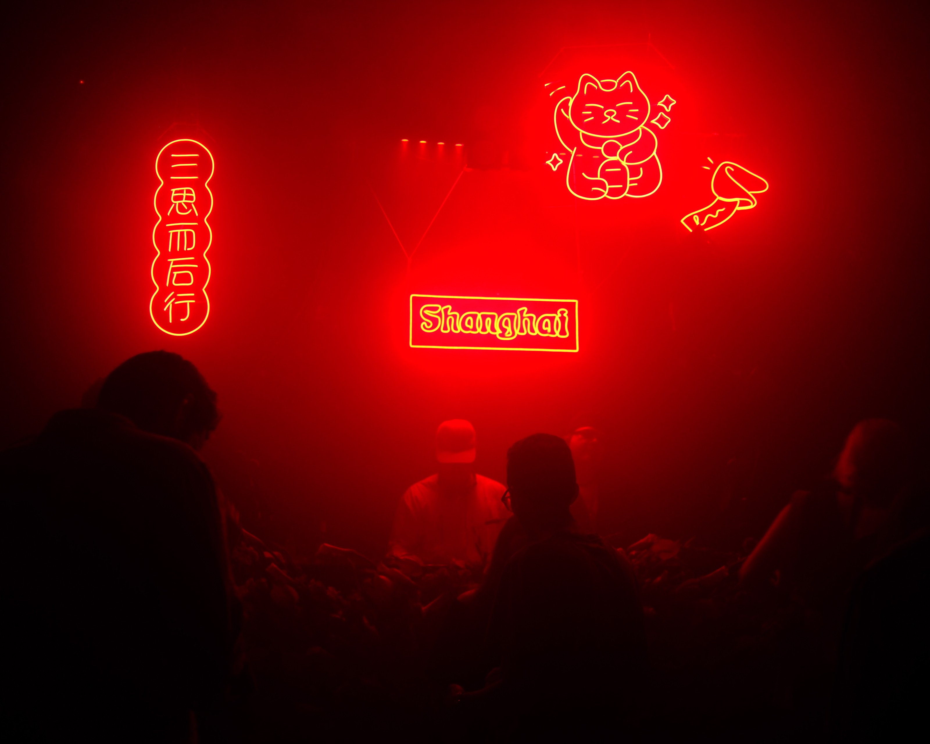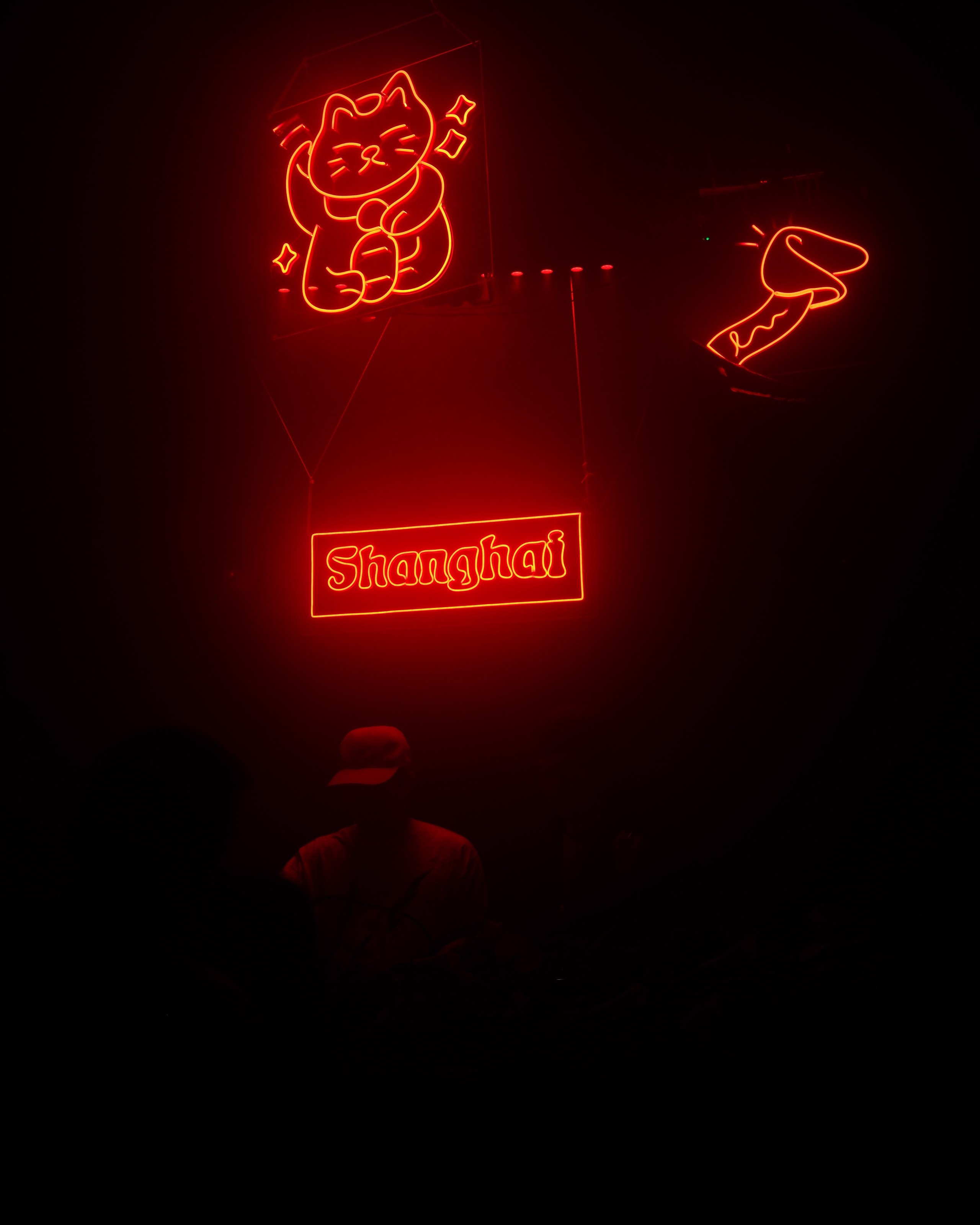 Light and haze were used to reshape depth and perception within the space, transforming the club environment into a cohesive sensory landscape. The goal was not to overwrite the venue’s character, but to reinterpret it — infusing it with Shanghai Café’s signature balance of graphic symbolism, rhythmic intensity, and atmospheric design.